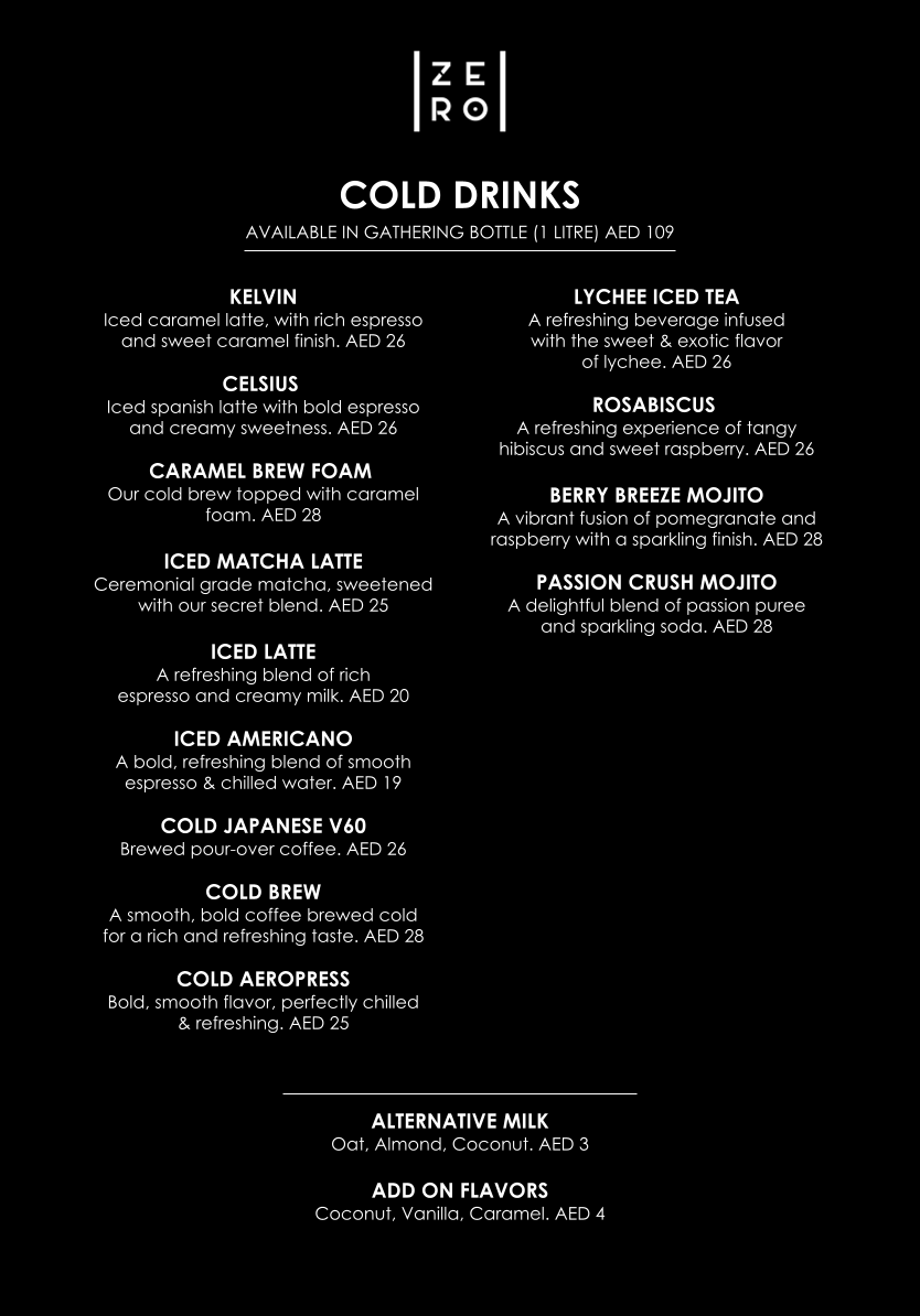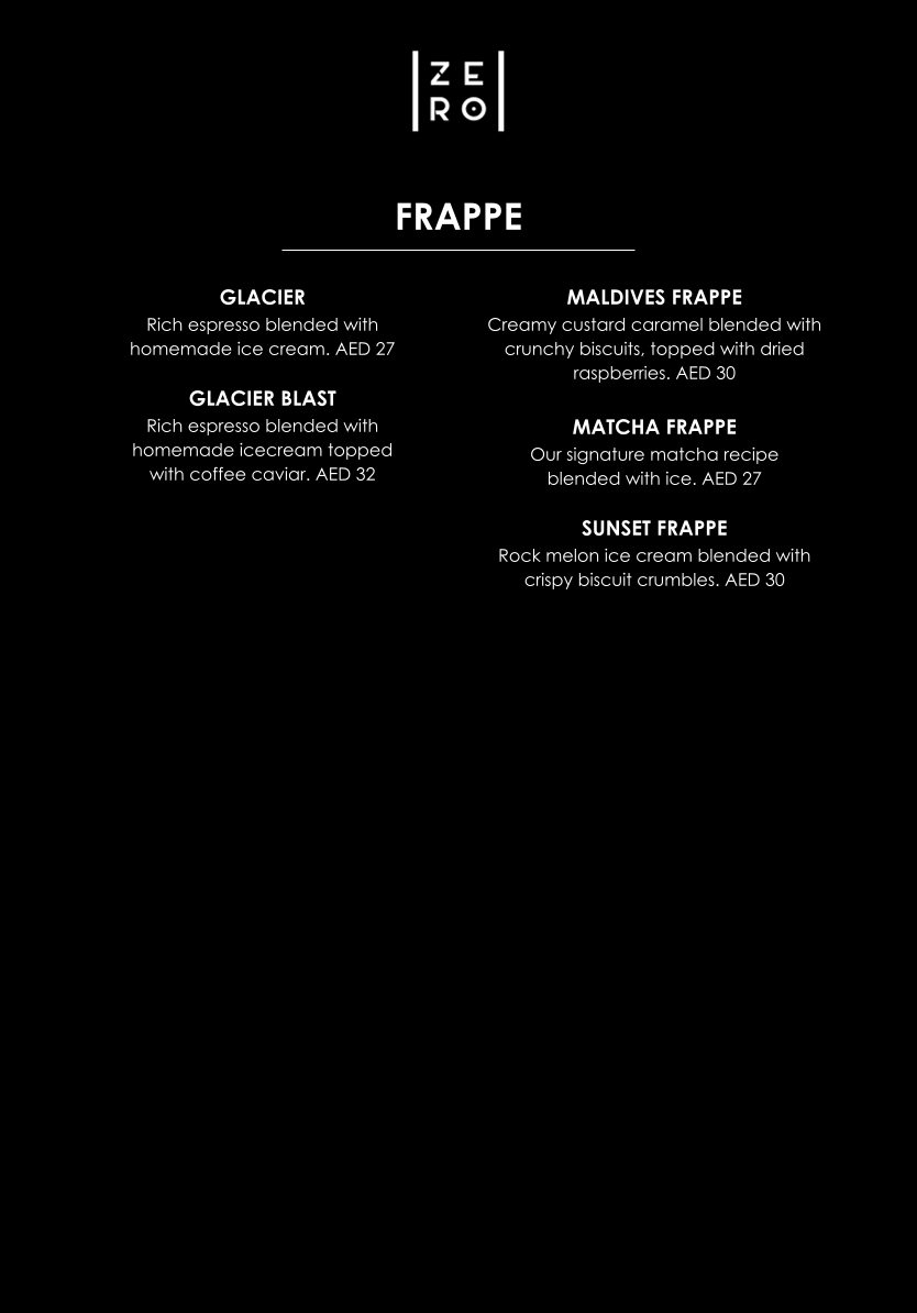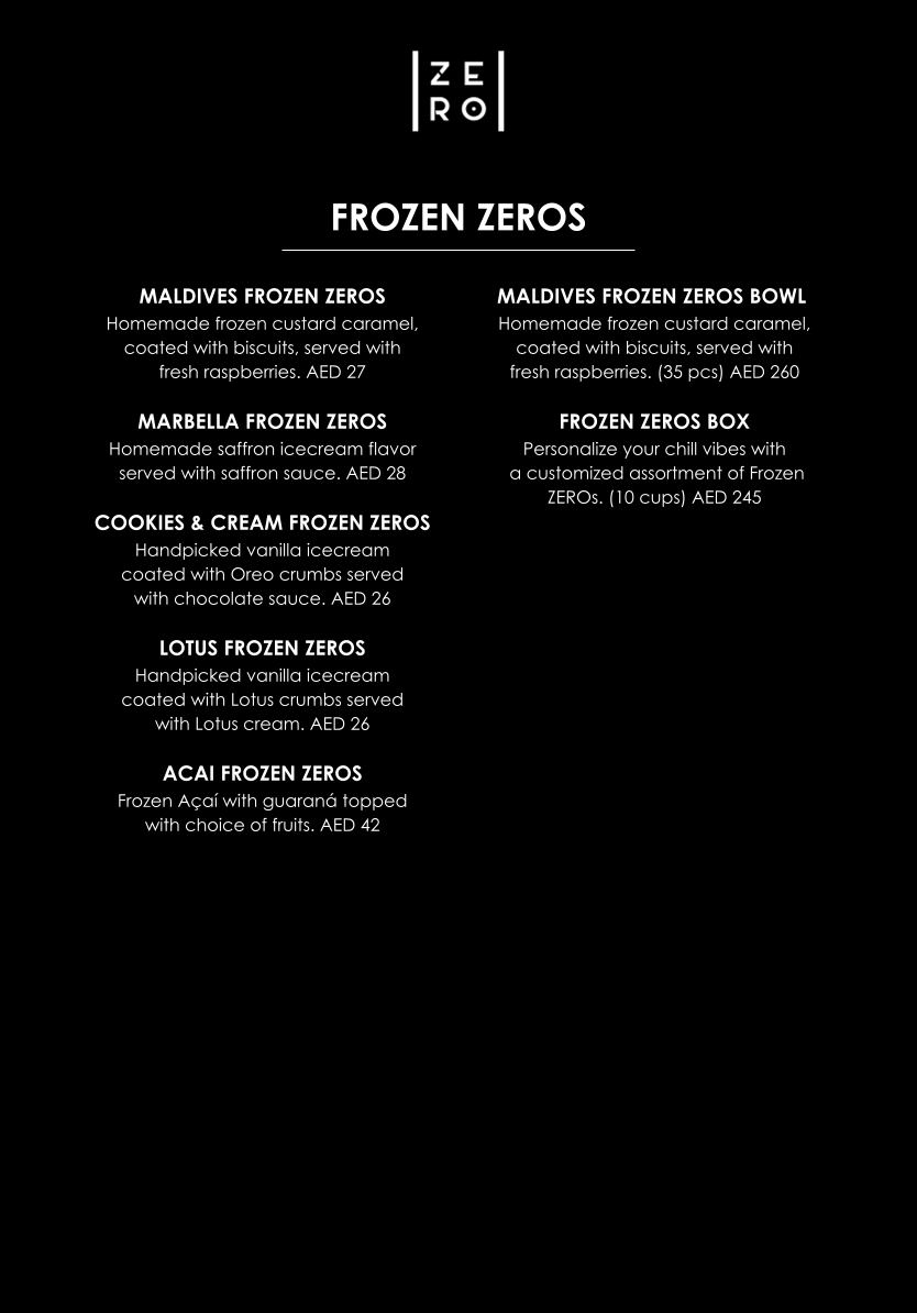 The Frozen ZEROs are a highlight, with exotic options like the Lotus Frozen ZEROs dripping in rich sauce, and the Acai Frozen Zeros bursting with fresh fruits and creamy peanut butter. For coffee lovers, the Hot Drinks menu is equally impressive, offering aromatic V60 coffee and velvety Spanish Lattes.